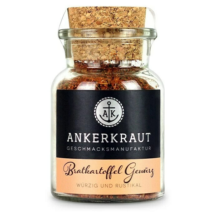 Das Ankerkraut Bratkartoffel Gewürz bildet die ideale Grundlage. Sei es für einfache Bratkartoffeln oder ein herzhaftes Bauernführstück. Röstzwiebeln, Meersalz, Paprika, Zwiebeln und Petersilie bilden die Grundlage, die durch eine würzige Mischung aus schwarzem Pfeffer, Rosmarin, Kümmel, Liebstöckelblättern und Majoran ergänzt wird. Durch das Zugeben von einem Esslöffel des Gewürzes wird aus der einfachen Beilage ein krosses und knuspriges Geschmackserlebnis.