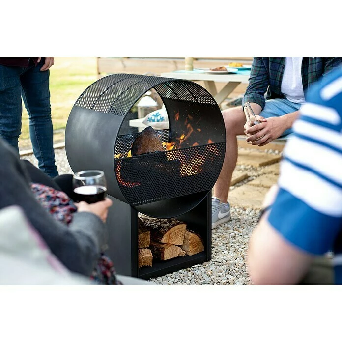 Die Buschbeck Feuerstelle Porthole ist ein dekorativer Hingucker in jedem Garten. Gefertigt aus robustem pulverbeschichtetem Stahl verbindet sie Rund und Eckig in einer harmonischen Form. Ausgestattet mit Funkenschutzgittern an jeder Seite und einem Holzablagefach im unteren Korpus, ist sie ideal für ein Beisammensein an kälteren Abenden.