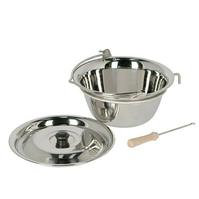 Der hochwertige Gulasch-/Glühweintopf von Buschbeck passt ideal zu den Edelstahlkaminen der Serie Auckland.