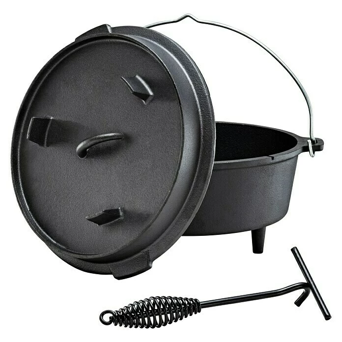 Der Dutch Oven gehört zu den traditionellsten und vielseitigsten Kochgeräten überhaupt. Ob Braten, Rösten, Schmoren, Backen oder Dämpfen – alles gelingt spielend einfach und der Geschmack der Speisen weckt Kindheitserinnerungen an die Schmortopfgerichte der Oma. Der Dutch Oven ist aus Gusseisen gefertigt und hält so die Wärme besonders lang. Er kann auf Seitenkochstellen eines Gasgrills, direkt auf dem Rost oder bei Kohlegrills und Feuerschalen auch direkt in der Glut verwendet werden. Über eine seitliche Aussparung ist es zudem möglich ein Grillthermometer einzuführen, sodass man stets die Temperatur des Gerichts im Blick hat.