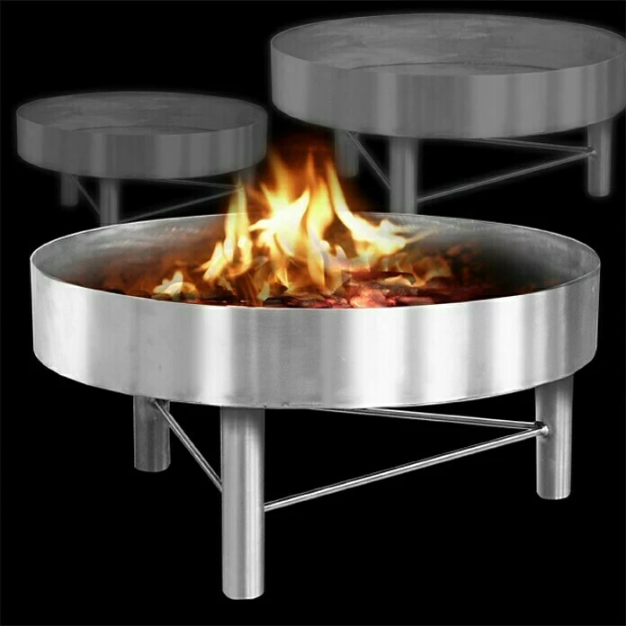 Die standsichere Feuerstelle aus hochwertigem Edelstahl hat einen Durchmesser von 65 cm und ermöglicht das saubere, gleichmäßige Verbrennen von Holz und anderen Materialien. Die offene Feuerstelle hat eine Standfußhöhe von 20 cm und eine Randhöhe von ca. 10 cm.