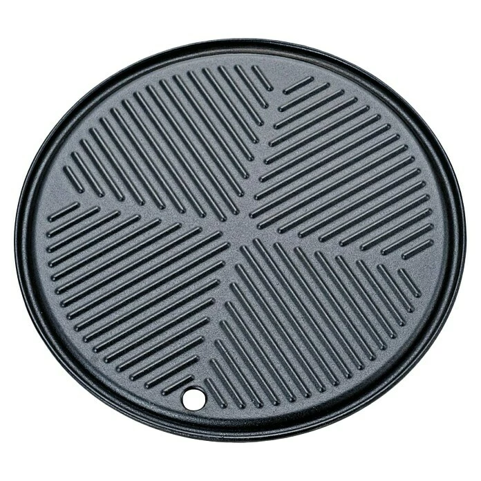 Die runde Kingstone Gusseisengrillplatte gibt die Hitze des Grills besonders effektiv an das Grillgut ab und ist zweiseitig verwendbar. So erzeugt die geriffelte Seite ein schönes Muster – Branding genannt – auf Fleisch, Fisch und Gemüse, wohingegen die glatte Seite zur Zubereitung von Spiegeleiern, Speck oder Pancakes verwendet werden kann. Sobald die Platte heiß ist, speichert sie die gesammelte Wärme und ermöglicht auch bei schwächerer Hitzeentwicklung ein gutes Grillergebnis.