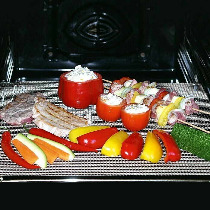 Dieses Kingstone Grillmatte ist das ultimative Zubehör mit einer Antihaftbeschichtung. Sie eignet sich zum Grillen oder Backen im Backofen von Fleisch, Fisch, Würstchen und Gemüse. Dank der Matte fällt nichts mehr durch den Grillrost, die Antihaftbeschichtung sorgt dafür das nichts mehr am Rost kleben bleibt. Zudem bleibt der Grillgeschmack zu 100 % erhalten. Diese praktische Grillmatte lässt sich ganz einfach reinigen und ist somit mehrfach verwendbar.