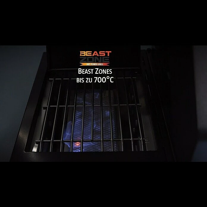 Der Kingstone Gasgrill Cliff 650-1 ist mit sechs Hauptbrennern und einem Infrarotseitenbrenner, der Beast Zone, ausgestattet. Der ideale Grill für größere Grillpartys, um große Grillgutmengen gleichzeitig zuzubereiten. Die Automatik-Zündung garantiert ein einfaches und sicheres Zünden der Brenner auf Knopfdruck. Der Grill verfügt über gusseiserne Grillroste, einen Pizzastein und eine Grillplatte, die bei Bedarf bequem gewechselt werden können. Der doppelschichtige Deckel, der Feuerkasten, sowie der Flammenverteiler wurden emailliert, was eine besonders leichte Reinigung ermöglicht Zur einfachen Bedienbarkeit des Gerätes bei Dunkelheit, können die Bedienknöpfe dank LED weiß beleuchtet werden. Dank der Rollen am Grillwagen ist der Gasgrill mühelos zu verschieben und mithilfe von Bremsen sicher in Position zu bringen. Im Lieferumfang enthalten sind außerdem ein Grillspieß mit Motor, Gewürzhalter, Zubehörhalter, Flaschenöffner, Gasschlauch und Druckminderer.