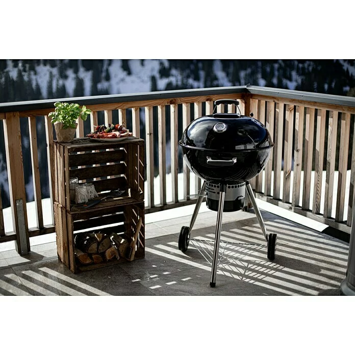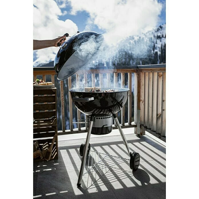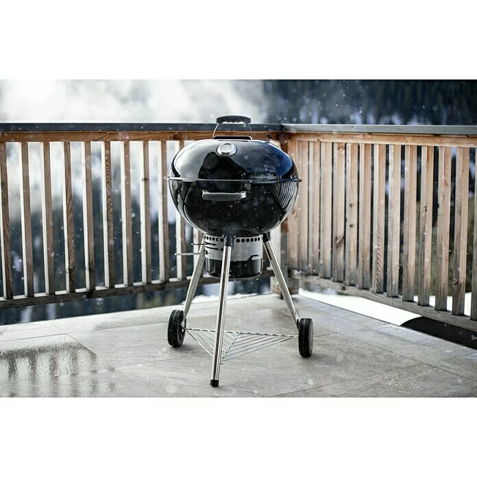 Seine Kugel besteht aus porzellanemailliertem Stahl und besitzt hitzebeständige Griffe. Der Deckel ist mit einem Thermometer bestückt, sodass die Temperatur im Innern des Grills stets kontrolliert werden kann.
