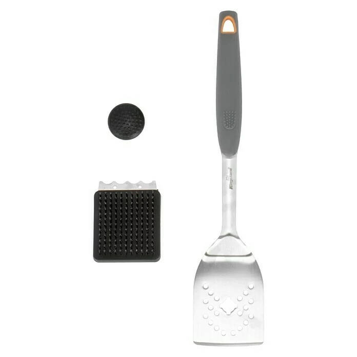 Das Kingstone 3 in 1 Multitool vereint Bratenheber, Grillbürste und Grillrostschaber in einem handlichen Werkzeug. Der Schaber kann einfach und schnell auf den Wender aufgesetzt werden, sodass dieser als Grillrostschaber fungiert und ein einfaches Reinigen des Rostes ermöglicht. Dank des ergonomischen Griffs liegt der Schaber sehr gut in der Hand und kann mit der Aufhängeöse auch leicht verstaut werden.