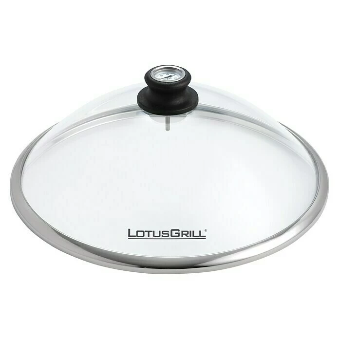 Die speziell entwickelte LotusGrill Glashaube aus Sicherheitsglas macht den Grill zu einem Multifunktionsgrill. Durch das integrierte Thermometer kann die erreichte Temperatur leicht abgelesen werden. Dank der Glashaube lässt sich das Grillgut durch das Glas bequem und sicher beobachten. Die Glashaube ist einfach zu handhaben und wird unkompliziert in der Spülmaschine gereinigt.