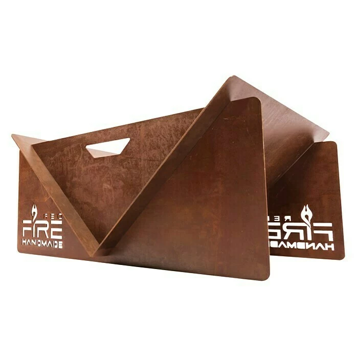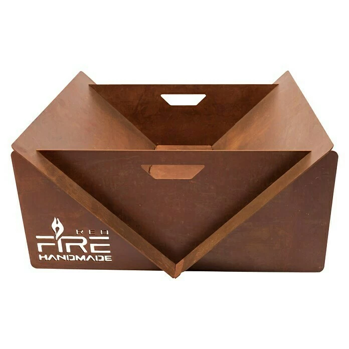 Die RedFire Feuerschale V ist aus robustem, 2 mm starkem Stahl in Rostoptik gefertigt. Sie ist sehr standfest und kann durch ihre Größe auch mit größeren Holzscheiten genutzt werden. Die V-Form sorgt während des Betriebs dafür, dass die Asche nach unten rutsch und somit genug Platz zum Nachlegen von Holz vorhanden ist. Durch die 2 Griffe lässt sie sich bei Nichtgebrauch einfach an einem geschützten Ort unterstellen.