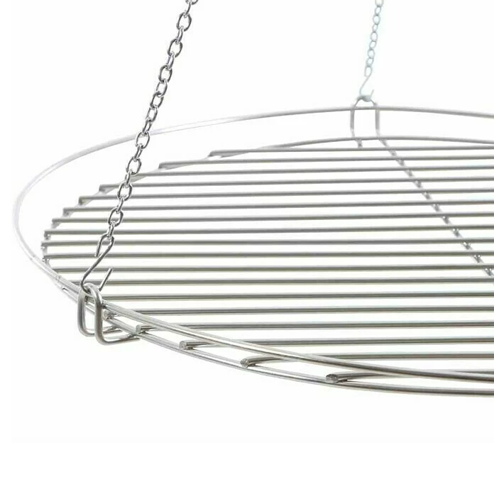 Mit dem runden Grillrost von Siena Garden lässt sich eine Feuerschale auf einfache Weise zu einem vollwertigen Schwenkgrill aufrüsten. Einzig ein Grillrosthalter oder 3-Bein-Ständer wird noch zusätzlich benötigt. Bei schon vorhandenem Schwenkgrill kann das Rost natürlich auch problemlos als Ersatzteil verwendet werden. Es ist aus Edelstahl gefertigt und besitzt einen erhöhten Rand, sodass kein Grillgut vom Rost fällt. Zusätzlich ist es mit Kette und S-Haken ausgestattet, damit es sofort eingehangen und genutzt werde kann.