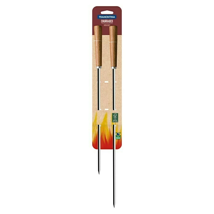 Das Tramontina Grillspieße-Set besteht aus 2 vielseitig einsetzbaren Spießen mit Klingenlängen von 41 und 51 cm. Die Spieße sind aus hochwertigem Edelstahl mit einem Hartholzgriff gefertigt. Dadurch sind sie besonders robust, wiederverwendbar und einfach zu reinigen.