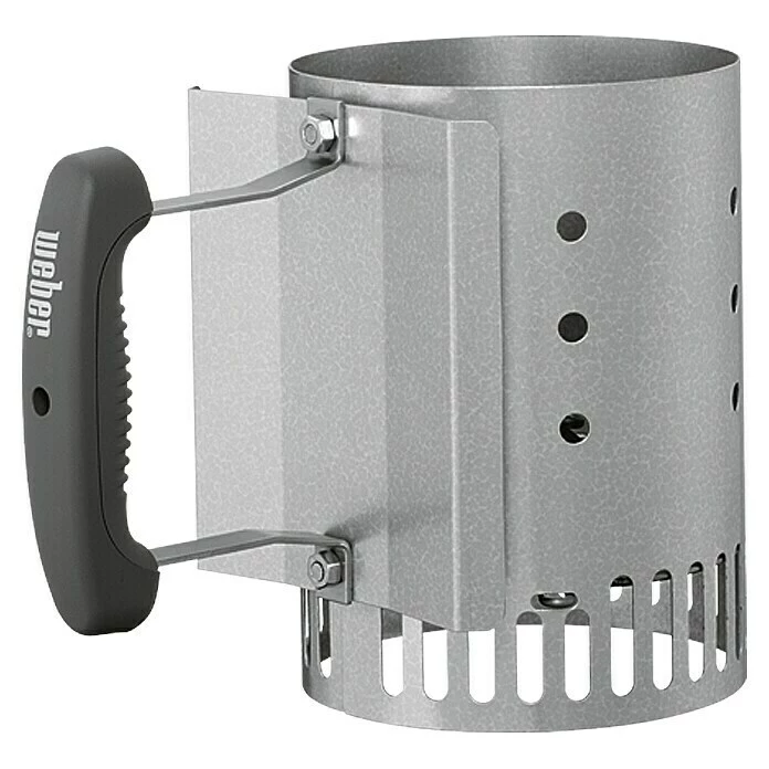 Bei diesem Anzündkamin von Weber handelt es sich um die kleinere Ausführung des bewährten Weber Rapidfire Anzündkamins. Er passt auf alle Weber Holzkohle-Grillmodelle (ab Baujahr 2003, auch passend für Weber Smokey Joe) und sorgt für perfekt glühende Briketts ganz ohne Flüssiganzünder. Legen Sie 2 – 3 Anzündwürfel unter den mit Briketts gefüllten Kamin und zünden Sie die Würfel an. Durch die Kaminwirkung beginnen innerhalb kurzer Zeit alle Briketts zu brennen und erreichen ein gleichmäßiges Glutstadium. Anschließend die Briketts auf dem Rost verteilen.