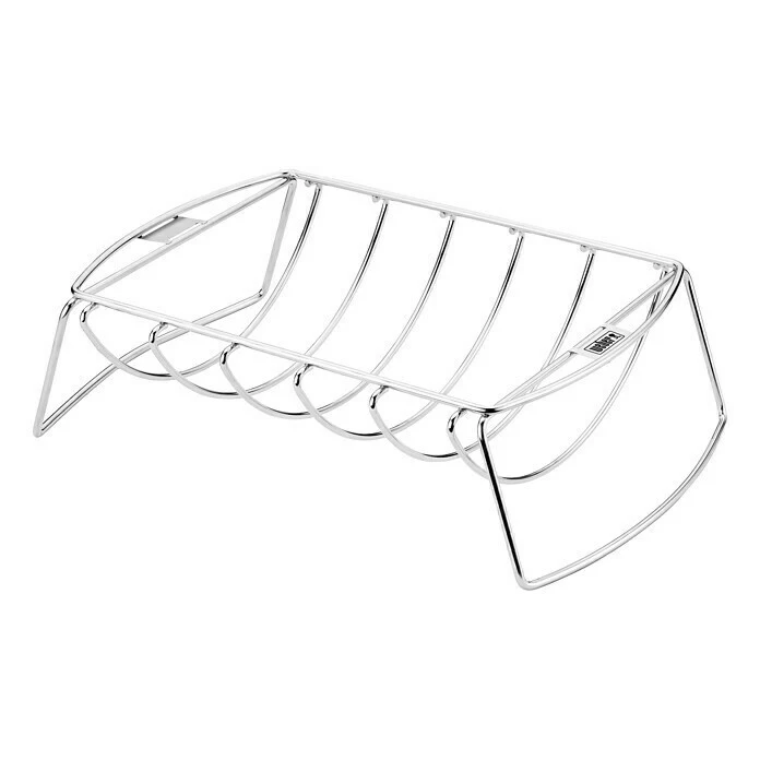 Der Weber Spare Rib Halter und Bratenkorb ist doppelt praktisch, je nachdem welche Seite verwendet wird: Er kann für das platzsparende Grillen kleinerer Grillstücke wie Spare-Ribs oder Hähnchenschenkel genutzt werden oder in seiner Funktion als Bratenkorb für das schonende Garen größeren Grillguts (Huhn, Braten). Unterhalb des Bratenkorbs sollte eine Alu-Tropfschale platziert werden, um den Bratensaft aufzufangen.Er ist für alle Kugelgrills ab 57 cm Durchmesser und alle Weber Gasgrillmodelle ab Q 200/2200 geeignet.