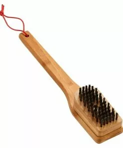 Die Weber Grillbürste ist mit ihrem abgewinkelten Bürstenkopf ideal um den Grillrost zu reinigen ohne nah an die Brenner zu kommen. Sie besteht aus Bambus und besitzt Edelstahlborsten. Mit Ihrer Länge von knapp 30 cm ist sie etwas handlicher als ihre große Schwester und optimal für kleine und mittlere Grillroste geeignet. Mit einem praktischen Lederband am Ende des Griffs lässt sie sich einfach aufhängen.