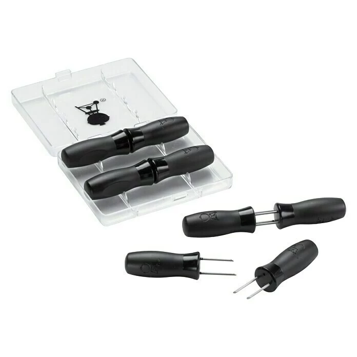 Das praktische Maiskolbenhalter-Set von Weber vermeidet klebrige oder verbrannte Finger und sorgt durch die Daumenfurche im Kunststoffgriff für sicheren und komfortablen Halt. Die Edelstahl-Picks können ineinander gesteckt werden und so optimal im Kunststoffkoffer aufbewahrt werden. Das Set besteht aus 8 Griffen und eignet sich somit für 4 Maiskolben.
